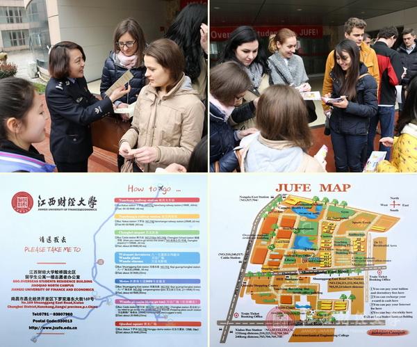 典礼后,留学生在我校学生志愿者的带领下参观校园,一边对照英文版校园地图,一边听志愿者的讲解。