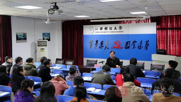 4月9日下午,江西省社会科学界联合会党组书记、主席祝黄河教授应邀作客马克思主义学院红土地论坛第五期第五讲,作了题为《习近平重要讲话精神与马克思主义理论学科建设》的学术报告,校党委副书记易小明出席了此次报告会。报告会由马克思学院院长陈始发主持。