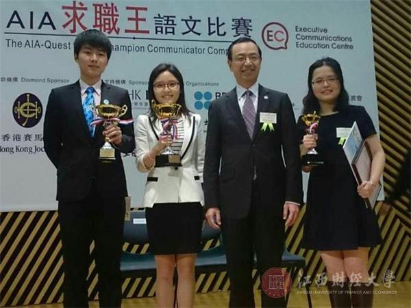 4月12日,由香港国际会计师公会(The Association of International Accountants,以下简称AIA)组织的第十四届AIA求职王语文比赛总决赛在香港公开大学举行。经过一天紧张激烈的比赛,代表江西财经大学参赛的国际学院2012级国际会计2班卢娜同学夺得冠军,澳门科技大学和香港城市大学的选手分获二、三名。参加总决赛的其他选手分别来自香港大学、香港中文大学、香港城市大学、澳门大学、中山大学、中央财经大学等高校。这是继2010年杨梓同学,2013年欧阳祎文同学之后,国际学院选派的选手第三度在该项比赛中折桂。
