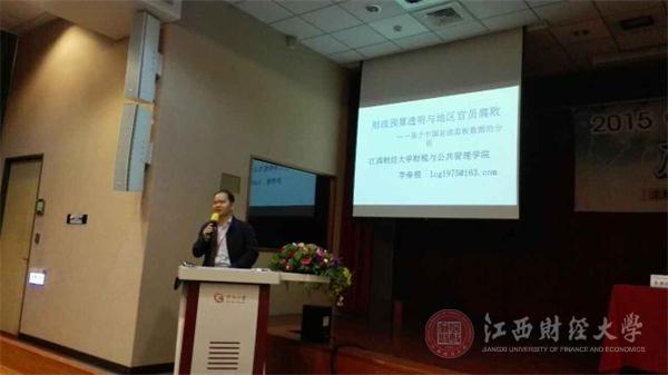 2015年4月17日,“2015两岸四地廉能治理”学术研讨会在台湾台北市举行。财税学院院长李春根教授作了题为《财务预算透明与地区官员腐败——基于中国省级面板资料的实证分析》的发言,姚林香教授就文化大学助理教授李馨芳的题为《财政透明与公民参与:台湾预算公开指数之评量》的发言作了点评。李春根的发言和姚林香教授的点评均受到与会专家一致好评,进一步扩大了学校的影响。会议期间,还就财税学院和世新大学管理学院合作事宜进行了洽谈。