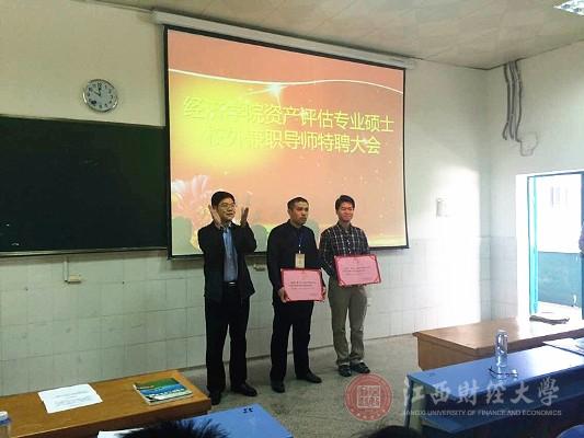 经济学院资产评估专业硕士校外兼职导师特聘大会于讲座开始前隆重举行:特聘请李世彤首席策略研究员、梁志爱副总裁两位兼职导师。陆长平院长代表经济学院表达对两位兼职导师的热烈欢迎,认为“两位导师的到来对提高学院师资力量有良好的促进作用。”