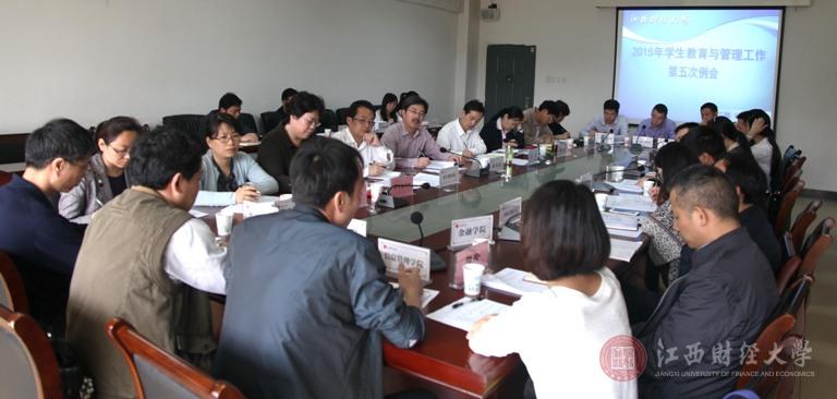 4月28日上午,蒋金法副校长出席第五次学生教育与管理工作会议并讲话。会议由学工部部长郑赟主持。会上,代表我校参加全国辅导员技能大赛的阳铃老师介绍了参赛体会,招生就业处王玉杰副处长通报2015年学校整体校园专场招聘情况和目前就业率,国际经贸学院与信息管理学院分别介绍了学院学生工作经验及特色做法。