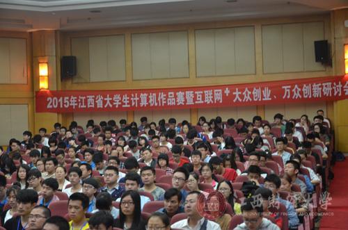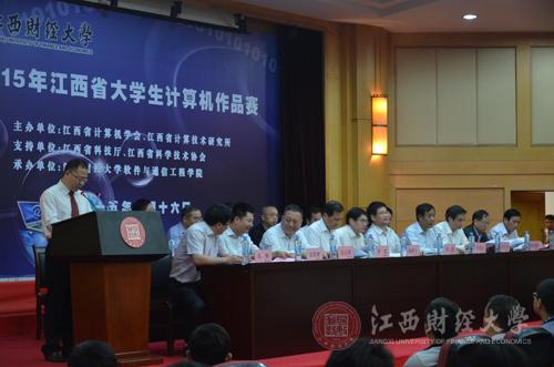 为努力适应“互联网+大众创业、万众创新”新常态,为我省各高等院校计算机、软件工程等信息类专业师生提供相互交流的平台,促进自主创新能力的提高,5月16日,2015年江西省大学生计算机作品赛在我校隆重举办。省政协副主席、民进省委会主委汤建人、省科技厅厅长洪三国、省科协党组书记、常务副主席罗莹、省委宣传部巡视员欧阳苏勤、省计算机学会理事长、南昌大学副校长李建民、省教育厅副巡视员吕玉琪、省人社厅副巡视员段明其、省民政厅副厅长刘立松、团省委副书记伍复康及部分在昌高校领导、我校副校长邓辉出席。会议由江西财经大学软件与通信工程学院院长关爱浩主持。