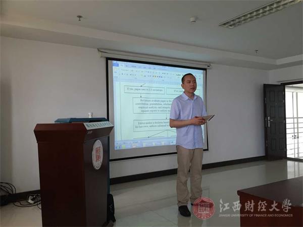 5月19日上午,胡武阳教授首先做了一场题为“Writing Tips for Publishing in SSCI Economic Journals”(SSCI经济学论文发表写作技巧)的讲座。胡教授首先分析了作为研究者在国际刊物上发表文章的必要性,并以加拿大农业经济为例介绍了SSCI期刊的影响因子、刊文数量、录取率等特点,并在这些方面与国内期刊作了比较。其次,从思想的重要性,模型的原创性、写作的方法论及语言的可读性等角度,分析了一篇好的SSCI论文应该具备的标准。随后,胡教授按照发表国际期刊论文的主要结构,就题目、摘要、引言、正文以及结论等组成部分的写作技巧进行了深入的分析。最后,胡教授在讲座中与大家分享了SSCI刊物的审稿流程和操作规则,并通过流程和规则的介绍给出了提高论文录用率的宝贵建议。