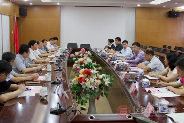 5月22日上午,西安财经学院党委书记杨涛一行8人来我校调研。党委副书记易小明、校长助理阙善栋和党办校办、人事处、教务处、科研处、工商管理学院、经济学院等部门的同志在南区综合楼第三会议室与来宾进行了座谈。