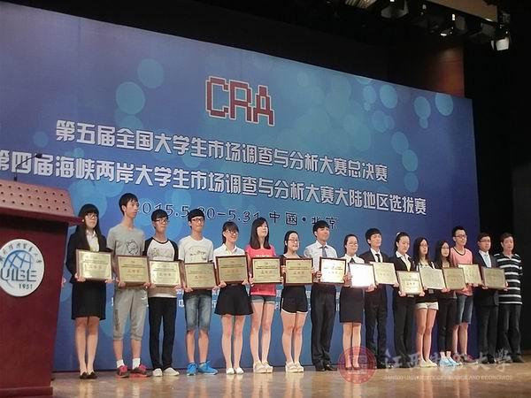 全国大学生市场调查分析大赛暨海峡两岸大学生市场调查分析大赛是由教育部高等学校统计学类专业教学指导委员会、中国商业统计学会与(台湾)中华应用统计学会共同举办的一项全国性的赛事。大赛自2010年启动以来,吸引了来自全国400多所高校的近4万名大学生报名参加市场调查分析技能大赛,知识竞赛合格的选手自愿组成团队参加市场调查分析实践赛。经学校选拔和推荐、大赛组委会评审,共有来自全国109所高等院校的195个参赛作品入围全国总决赛,其中本科组作品160个,高职高专组作品35个。本次大赛总决赛采取调研报告陈述演示和现场答辩相结合的方式进行,评委由国家统计局和北京市统计局的专家、全国知名的市场调查公司的市场研究总监、重点财经院校从事统计调查教学的教授等组成。