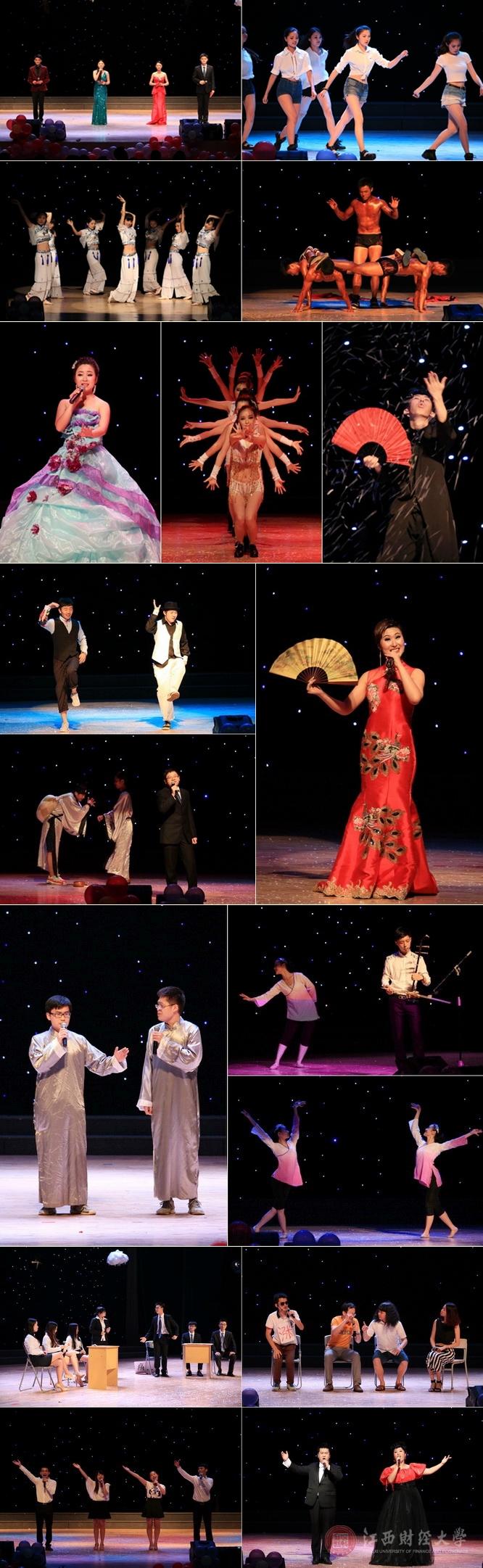 整场晚会以“正青春”、“致青春”和“忆青春”三个篇章为主线,研究生们用美轮美奂的歌声、或热辣或优美的舞蹈、幽默诙谐的小品和相声、悦耳动听的乐器合奏等异彩纷呈的节目为2015届毕业研究生献上了祝福。一首首歌、一支支舞、一句句话道出了每一个江财研究生必不可少的生活点滴。落花纷飞,时光飞逝,开心欢笑,对母校沉重的爱,对校园生活的留恋、对美好生活的追求和对祖国的挚爱之情。