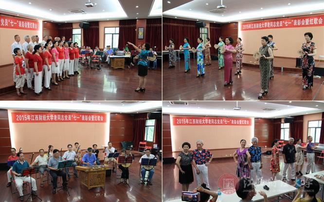 6月26日下午,校工会俱乐部热闹非凡,歌舞飞扬一派喜悦气氛,校离退休工作处在这里举行2015年江西财大老同志党员“七一”表彰会暨红歌会。