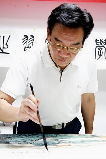 6月26日上午,由江西省文联主办,省美术院、省美术家协会、省书法家协会和江西画院承办的“拟古出新----汪天行山水画新作展”在江西省文联一楼展厅展出。