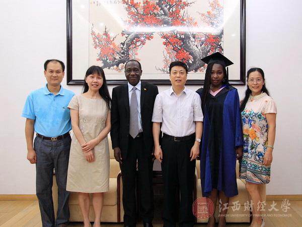 6月29日上午,王乔校长亲切会见了马里共和国驻中国特命全权大使科内,对远道而来参加我校2015年毕业典礼暨学位授予仪式的科内先生一行表示热烈的欢迎,并向客人赠送了校园文化品。随后,王乔向我校首届留学生毕业生代表KONE DOUNAMBA MALI表示问候和祝贺,希望她在回国后,能够一如既往地关注中国、关注江西财经大学的发展进步,把在江财的学习情况和中国人民的友好之情传递给本国人民,为双方的文化交流和友谊做出贡献。