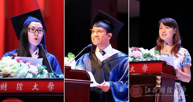 留学生代表、来自孟加拉人民共和国的shakij(中文名龙海)回顾了“在江财的美妙生活”。他说,“我们的学习环境很棒,老师像家里的父母对孩子一样,在学习和生活上给予了我们无微不至的关怀”,“ 我将永远是江财人”,并最终以一句“我爱江财”结束发言。