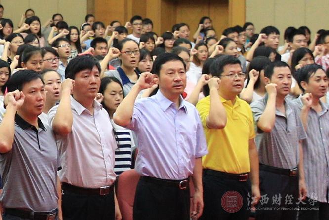 7月1日早,我校隆重举行重温入党誓词与新党员入党宣誓活动,纪念中国人民抗日战争暨世界反法西斯战争胜利70周年,庆祝中国共产党94岁生日。校党委副书记易小明出席,学校党群部门负责人同志及各学院党委书记、副书记、组织员、分团委书记、辅导员、学生党员等500余人参加了活动、校党委宣传部部长王金海主持了仪式。校党委组织部副部长徐翔领誓。