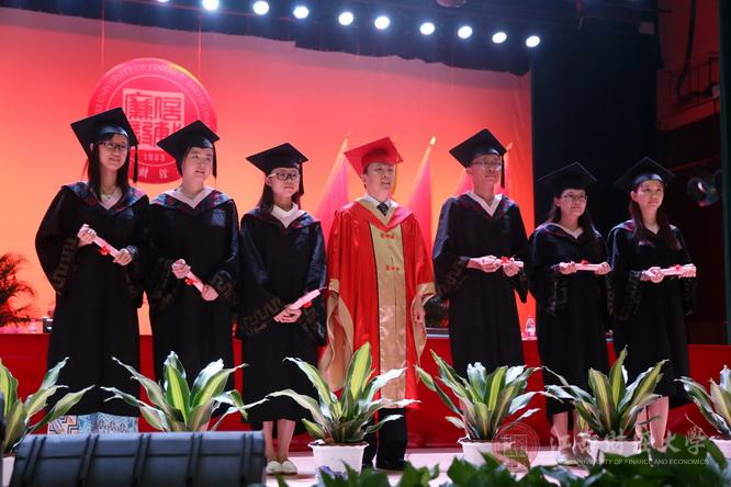 在全体毕业生的殷切期待中,蒋金法副校长向优秀毕业生代表颁发荣誉证书;校纪委书记杨建林向毕业生代表颁发校友卡;王小平副校长向海外升学奖获得者颁发荣誉证书及奖学金;国际学院杨慧院长宣读了授予学位的学生名单。