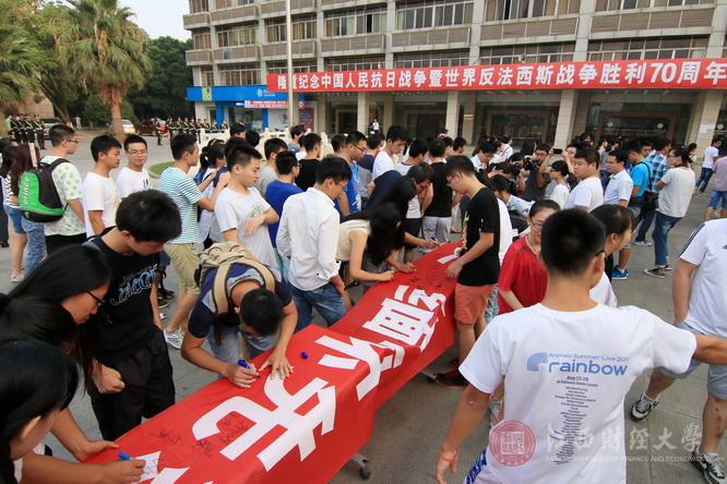 为大力弘扬抗战精神,进一步激发全校师生爱国热情、凝聚改革力量、增强发展信心,9月2日清晨,学校隆重举行了纪念中国人民抗日战争暨世界反法西斯战争胜利70周年升旗仪式。校党委副书记易小明、副校长蒋金法、校长助理阙善栋出席仪式。校党委宣传部部长王金海主持仪式。