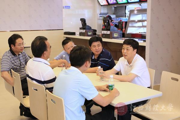 调研时,王乔详细了解了食堂一楼风味餐厅、二楼大伙食堂就餐环境、硬件设施改造、经营状况及教工餐厅整改情况,就饭菜品质、价格接受程度等与正在就餐的同学进行了亲切交谈。他充分肯定了食堂的内部环境改造、经营模式、整体服务品质,并对南区食堂运营工作提出了新要求:一要切实提升膳食服务质量,坚持可持续发展,始终保持优质的服务水平;二要准确定位、价格合理,满足师生高、中、低多层次需求,以有效应对师生日益增长的餐饮服务需求的挑战;三要切实保障食品卫生安全,这是膳食服务的首要前提,不能有一丝一毫的闪失,服务品质的提升要以确保食品卫生安全为基础;四要从广告宣传、经营方式等方面着手,在食堂内外环境中融入校园文化符号,营造有江财特色的食堂餐饮文化。