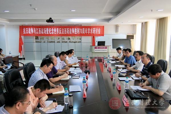 9月2日,抗日战争与江西战场暨纪念世界反法西斯战争胜利70周年学术研讨会在我校召开。此次会议由江西省现代中国研究学会主办,我校生态文明与现代中国研究中心、旅游与城市管理学院联合承办。江西省社联副主席吴永明、中国井冈山干部管理学院副院长匡胜,江西省现代中国研究学会会长、我校博士生导师温锐教授,南昌大学历史系张芳霖主任、江西省社科院历史所汤文清所长和我校科研处处长匡小平等专家、学者以及我校党委宣传部、马克思主义学院、旅城学院部分教师和研究生参加了会议。副校长蒋金法出席会议并致辞。