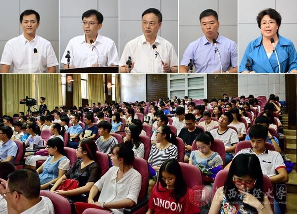 来校参加“五进”校园宣讲会的宣讲团成员分别是江西广播电视大学教务处考试中心主任兼团委副书记,抗日干部、老红军后代张世麒老师;江西师范大学政法学院院长周利生教授;省委党史研究室主任、江西省中共党史学会会长王晓春教授;南昌大学立法研究中心法学博士程迈副教授;我校招生就业处副处长王玉杰教授。五位宣讲团成员分别以《回望革命征程 传承抗战精神》《培育和践行社会主义核心价值观》《铭记历史、不忘苦难、奋发图强、振兴中华》《迈入全面推进依法治国的新时代》《青春最是创业时,少年创新无穷期》为题,从不同的角度,以详实的史料、可信的故事、生动的语言、饱满的激情讲述了中国人民在抗日战争期间共赴苦难、奋力抗争、打败侵略者的真实历史和牢记党的历史、激活红色基因、自觉践行社会主义核心价值观,大力推进依法治国、治校、治教,积极投身大众创业、万众创新的时代潮流,切实加强大学生创新创业教育的所见、所闻、所思、所悟,为我校师生上了一堂精彩的“开学第一课”,让在场师生深受感染,深受启发。