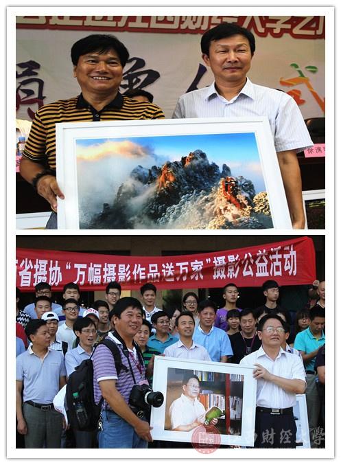 在下午举行的捐赠仪式上,江西省摄影家协会捐赠60幅获得省级奖摄影作品、协会出版摄影专业图书百余本给学校收藏。同时,学校礼聘徐渊明为客座教授。