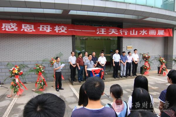 画展开幕式隆重而简约,汪天行即兴发言饱含着对母校的浓浓情意:“我们每一个江财人,无论是在哪里,只要是提到江西财经大学,无不倍感光荣和骄傲。一代又一代江财人的努力、一届又一届江财学子走向社会,他们在全国各地、世界各国创造了无数的辉煌。”“江西财经大学不仅是声名远播,而且受世人瞩目。我们选择了在9月教师节、在新生报到日来举办此次活动,有如我的同班、同组、同床、同房、同桌的你——王乔校长所言一样,是对母校的一种汇报,也是对母校的一种感恩。”