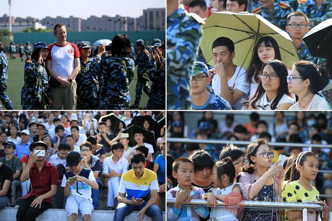 军训领导小组全体成员、各学院党委书记和军训跟训教师,部分学生家长与在校生数百人观看了军训汇演。(文/宣传部 郝海涛 体育学院国防教育部 胡晓铁 图/孙坚 编辑/孙爱霞)