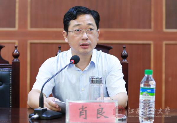 江西省司法厅副厅长、党组成员、江西省律协党委书记肖良致辞。他说,厅直属律师委员会与江西财大法学院合作,是一个与时俱进的选择,是在全国律师协会开会前夕的一个重要活动,要利用法学院的研究成果培养我们的律师,建立律师导师制度。同时他表达了对即将进行合作的美好展望。