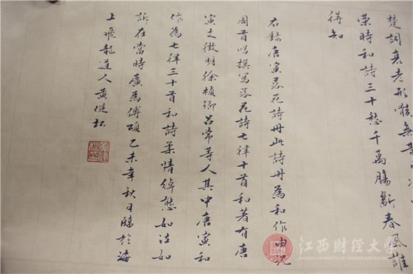 讲 讲座现场黄健松老师向同学们展示了自己收藏和书写的作品,笔酣墨饱的作品赢得了现场同学的阵阵赞叹和深深的敬佩。讲学完后还与现场同学进行交流,分享学习书法的心得体会。