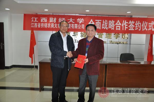11月3日下午,我校旅游与城市管理学院、工商管理学院、国际经贸学院共同与江西省供销农商大市场投资有限公司全面战略合作签约仪式举行。校长助理阙善栋,工商管理学院院长胡宇辰,江西省供销合作社经营管理处处长孙立铭,江西省供销农商大市场投资有限公司吴跃进总经理等出席签约仪式,仪式由旅游与城市管理学院院长邹勇文主持。