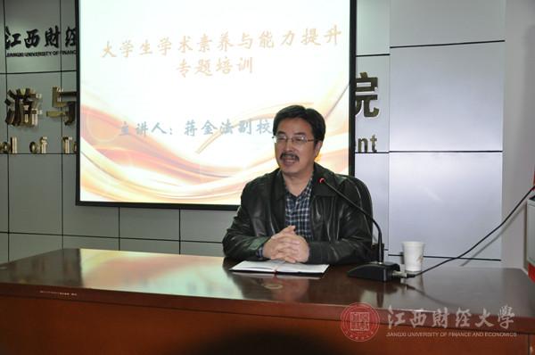 11月20日,蒋金法副校长为旅游与城市管理学院师生作题为“大学生学术素养与能力提升”的讲座。学院相关负责人、主要学生干部和各类课题负责人共80余名本科生、研究生聆听了讲座。