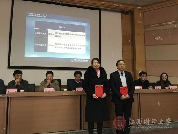 此次研讨会的征文主题为“机构知识库:建设与服务”。会上共收到论文44篇,经过评委们严谨科学地评审,最终评出一等奖两名,二、三等奖若干名。我校图书馆陈香珠老师的《昌北高校图书馆联盟建设现状与发展战略研究》一文以“十三五”规划的前沿话题和较具战略的眼光获得评委们一致好评,喜获第一名。此外,我校图书馆生修雯老师的《基于高校图书馆文化的核心价值体系分析》一文荣获优秀奖。