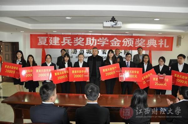 夏建兵校友是我校1994级理财系学生,为鼓励品学兼优的学弟学妹,在旅游与城市管理学院、人文学院设立“江西财经大学夏建兵奖助学金”,捐赠20万元,每年奖励资助20名学生,其中夏建兵奖学金10名,每人3000元;夏建兵助学金10名,每人2000元。(文/阮艳平 图/旅游与城市管理学院 编辑/匡琳)
