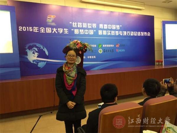 近日,“丝路新世界·青春中国梦”2015年全国大学生“圆梦中国”暑期实践季专项行动总结发布会在对外经济贸易大学召开,我校团委副书记杨婉琪受邀出席本次会议。在本次总结会上,我校工商管理学院“圆梦丝路”实践队、旅游与城市管理学院“旅城中国梦之队”实践团荣获优秀团队称号,我校与厦门大学等九校联合调研团队获得优秀实践调研报告,除此之外,共有三人获得实践标兵,三人获得优秀个人。