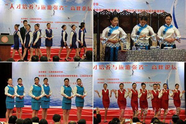 论坛上,南昌师范学院和江西旅游商贸职业学院的学生进行了茶艺和礼仪专业技能教学成果展示,抚州市梦湖和湿地管理中心雷音媛、南昌力生国际酒店单文峰、北京巅峰智业旅游文化创意股份有限公司黄成、南昌大学龚志强教授、江西师大冯淑华教授、南昌师院殷剑教授、九江学院李松志教授、江西旅游商贸学院张蕾教授、江西财大邹勇文博士等做主旨发言,与会专家围绕“人才培养与旅游强省”做深度研讨。