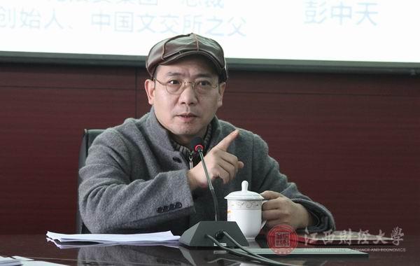 彭中天系江西省政协常委,民革中央委员,南昌市人大代表,南昌市人民政府参事,他特别关心江西经济的发展,以他所主导的庐山文化品牌建设为例,认为江西要充分发掘与利用自身既有的深厚文化底蕴与丰富旅游资源,走文化经济发展的道路。随后,彭中天以其自创的商业模式——艺术家公盘等为例,为师生们进一步地展示了什么是文化经济,以及文化经济应当如何发展。他认为,文化经济是相对于农业经济、工业经济这样一个历史的跨度而言,文化经济将是取代工业经济的新经济型态,而“明心、取势、建道、优术、求仁、弘德”,则是发展文化经济层层递进的总体思路。彭中天理论与实践相结合的精彩演讲令人受益匪浅,赢得了师生们热烈的掌声。(图文/人文学院 编辑/匡琳)