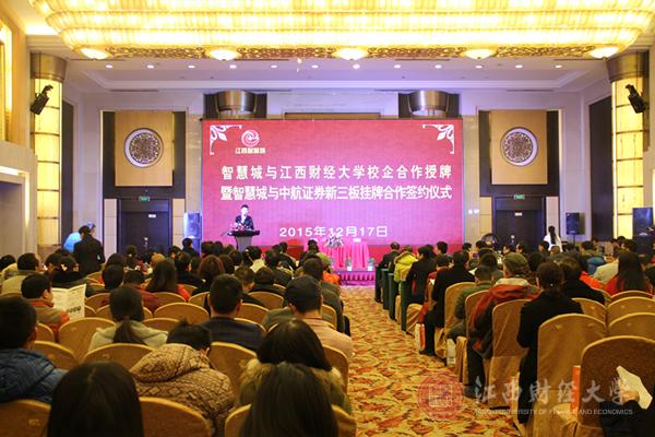12月17日上午,江西财经大学与江西智慧城电子商务有限公司校企合作授牌暨智慧城与中航证券新三板挂牌合作签约仪式举行。我校副校长邓辉,江西智慧城电子商务有限公司智董事长姚建,中航证券总经理王晨光,我校信息管理学院院长毛小兵,院党委书记邹春发等参加了签约仪式。