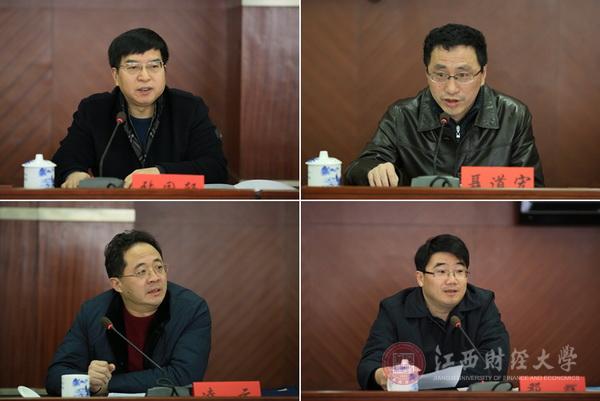 聂道宏、张国轩、凌云代表协同单位致辞,表达了协同单位对法治江西建设协同创新中心的高度重视,期许协同创新中心能回应全面推进法治江西建设的重大需求,合力将协同创新中心建设成为“法治江西建设”的科学研究高地、人才培养基地、信息交流中心与社会服务中心,成为建设小康社会、创建秀美江西的法治保证。