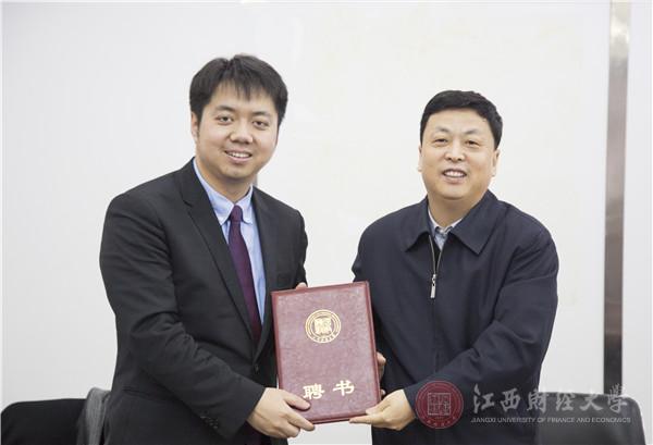在学术讲座开始前,王乔代表学校向王文颁发了客座教授聘书。(文/科研处 图/宣传部 编辑/孙爱霞)