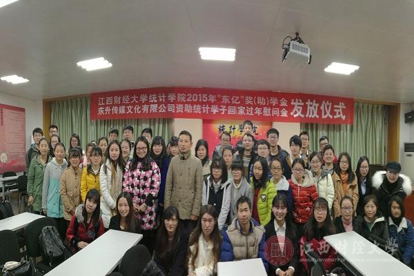 12月25日下午,统计学院2015年度“东亿”奖学金暨北京中视东升公司2016年春节特别慰问金发放仪式在学院会议室举行,学院党委书记叶绍义、党委副书记涂远武等学院学工教师出席颁奖仪式。