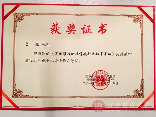 12月27日至29日,“2015中国影视艺术创新峰会”在杭州举行。峰会的主要内容之一是宣布“第四届飞天电视剧优秀评论”的获奖名单。我校艺术学院刘涵老师论文《浅析家庭伦理情感剧的叙事策略》(独撰)荣获二等奖,刘涵老师本人作为获奖代表受邀赴杭州参加颁奖典礼。