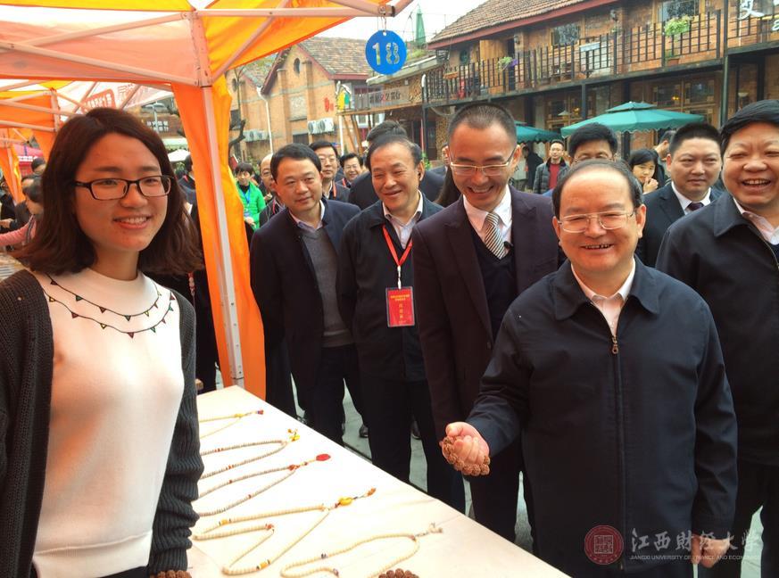 近日,江西省委书记强卫、省长鹿心社、省委副书记刘奇等领导莅临全省大众创业万众创新现场推进会,同与会人员一起参观了青山湖区699文化创意产业园。我校人文学院2014级传播学学子陈瑶瑶作为创客参加本次创意市集活动。