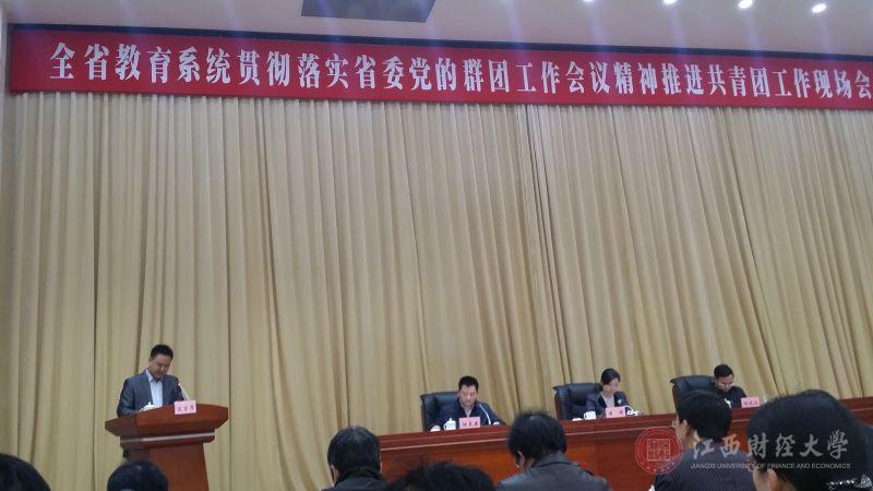 3月29日下午,全省教育系统贯彻落实省委党的群团工作会议精神推进共青团工作现场会在省会议中心召开,团省委书记曾萍,省教育工委副书记、省教育厅副厅长喻晓社出席会议并讲话。我校党委副书记易小明出席会议。井冈山大学党委副书记肖长春、我校团委书记习金文、南昌市教育局党委书记、局长谢为民分别做交流发言。