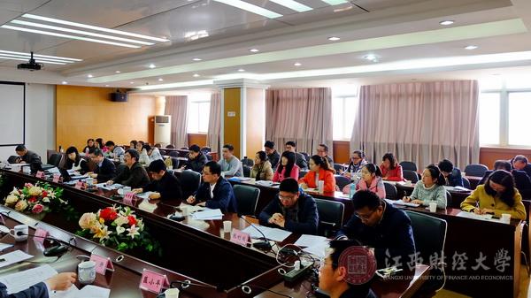 3月31日上午,由我校副校长蒋金法教授担任首席专家的2015年度国家社会科学基金重大招标项目“建构基于生态文明建设的公共财政体制研究”开题研讨会举行。校长王乔教授,鄱阳湖生态经济研究院张利国教授、科研处长匡小平教授、项目组成员和研究生,以及外请专家中国社会科学院李周研究员、中央财经大学马海涛教授、上海财经大学刘小兵教授、中南财经政法大学陈志勇教授、东北财经大学孙开教授、西南财经大学刘蓉教授、中国财政科学研究院陈少强研究员等30余人参加本次研讨会。研讨会由财税与公共管理学院院长李春根教授主持。