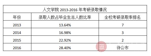 多年来,人文学院一直高度重视学生的考研情况,成立学院就业工作领导小组,采用“四互联动”。一互助:健全考研摸底制度,辅以一对一考研交流、考研服务工作,引导考生将主要精力投入于专业学习上。二互动:定期举办考研讲座,分析考研新形势、新政策、新要求,帮助考生积极应对考研新变化。邀请名校名师来院讲学,与学生进行学术交流。定期安排优秀考研毕业生与应届考生分享考研经验,为其考研助力。三互赢:营造学习氛围,组织考研同学交流会,互相分享考研信息、学习方法,共同进步。四互励:学院对于备考硬件、软件设施等方面落实后勤保障制度,并出台《人文学院本科生考研的奖励办法》,在每年6月为优秀考研毕业生进行颁奖,以此激励学生认真备战考研,树立考研榜样。