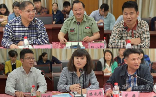 财税与公共管理学院院长李春根同志宣读了学校的聘任文件。南昌理工学院院长邱小林、江西省人民政府办公厅行政管理研究室主任徐达、江西省国家税务局征管科技处处长熊惺、江西省广昌县人民政府常务副县长郑锦锋、江西国瑞税务师事务所董事长樊凌希、江西省南昌市新建区国家税务局局长曾巍等6位校外实践导师,随后依次发言。他们衷心感谢学校和学院给予的荣誉和信任,感到这是一件很幸福很快乐的事,同时多了一份责任,多了一份担当,少了一份懈怠,愿意和荣幸为学校和学院的发展尽一份力量。