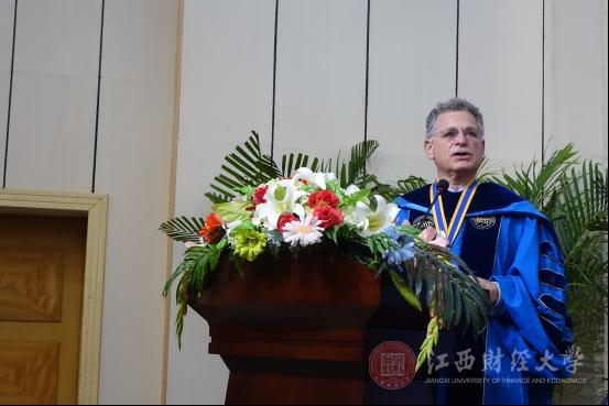 李良智在致辞中,代表我校对圆满完成学业并获得纽约理工学院工商管理硕士学位的中美MBA第十五期同学表示衷心祝贺,对美国纽约理工学院贵宾的到来表示欢迎,对辛勤工作的中美双方老师和管理人员致以崇高敬意。他说:“一朝江财人,一生江财人”,今天大家以学在江财为荣,明天江财以你们的成就为傲。他期望学员们一如既往地付出更多努力,运用自己所学知识在自己岗位上继续创造更加骄人的业绩,报效两校教师培养,为我国的经济社会发展以及促进中美两国交流作出自己贡献。