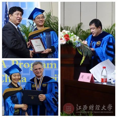 王小平为中美毕业生颁奖,刘贤方宣读了《2014中美合作MBA项目(第15期)毕业生名单》,朱莉安诺为毕业生颁发了学位证书。