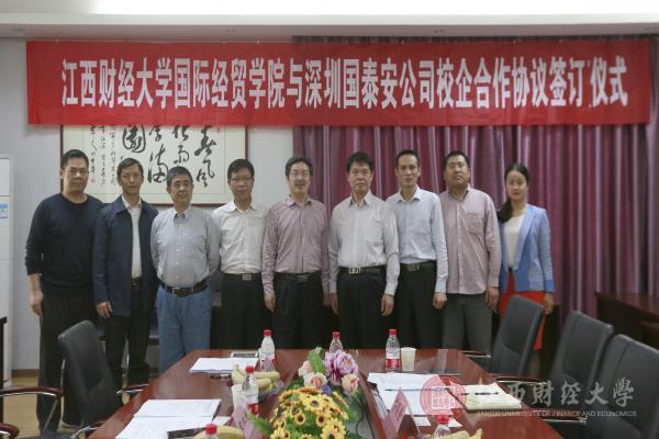 4月29日,国际经贸学院与深圳国泰安公司校企合作协议签订仪式隆重举行。双方合作主要围绕跨境电商和创新中心建设展开。副校长蒋金法教授出席仪式并讲话。国贸学院院长袁红林、党委书记罗明芳,深圳国泰安技术股份有限公司唐应元执行总裁、龙开鸿总经理、李昌奎副总经理及相关部门负责人出席了此次合作签约仪式,会议由罗明芳书记主持。