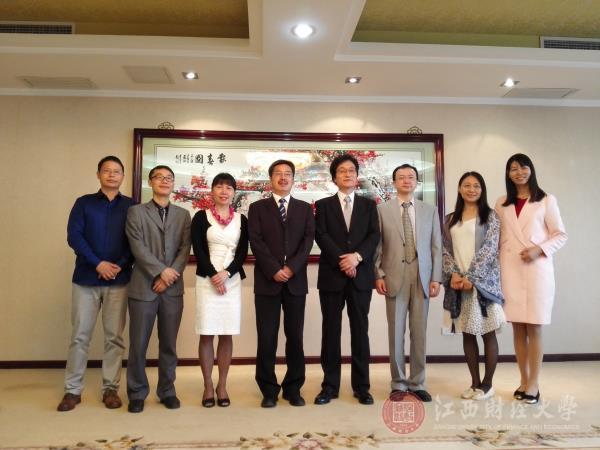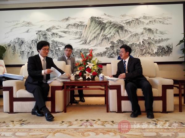 蒋金法与古口博之进行了非常友好的会谈。蒋金法代表学校向客人表示了欢迎,并简要介绍了学校的基本情况以及近年来国际化办学取得的成绩。古口先生对江西财经大学国际化办学取得的成绩予以了赞赏,并向与会人员介绍了日本岐阜经济大学的办学历史和国际化发展情况。随后,双方就学分互认、本科层次的学生交流项目等合作内容达成了意向。