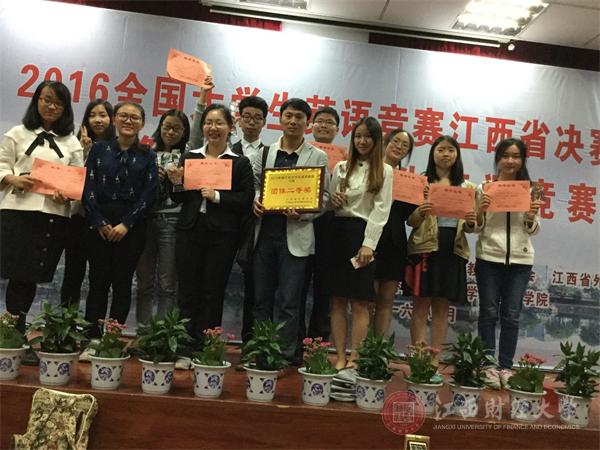 2016年全国大学生英语竞赛(NECCS)江西省决赛暨“赣江杯”大学生英语竞赛于5月9日下午圆满落幕。经过两天紧张激烈的比赛,我校共有12位选手获得全国大学生英语竞赛江西赛区特等奖,同时获得C类 (本科)比赛团体二等奖。此外,我校选手在其他类别和“赣江杯”上也取得了优异的成绩: 3名选手获“赣江杯” 大学生英语竞赛C类(本科)特等奖, 4名选手获“赣江杯” 大学生英语口语竞赛本科类特等奖,7名选手获一等奖,1名选手获A类(研究生)一等奖。