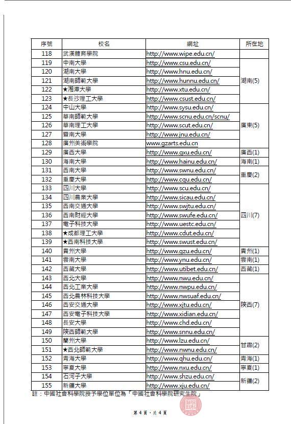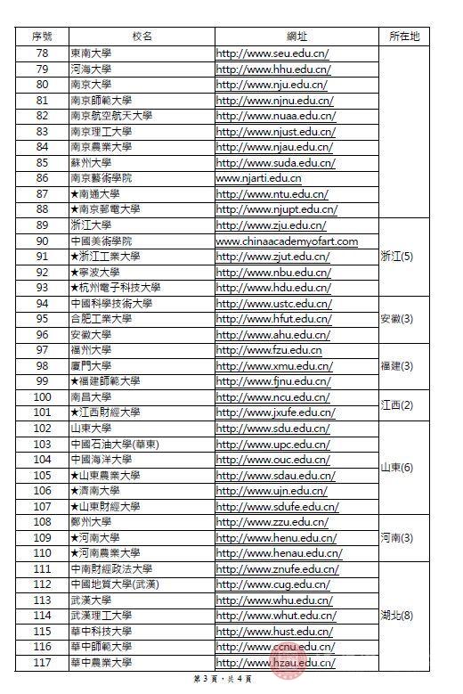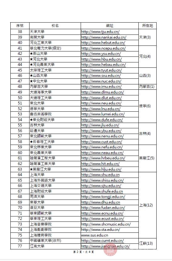 附件:台湾地区教育主管部门采认大陆地区高等学校名册