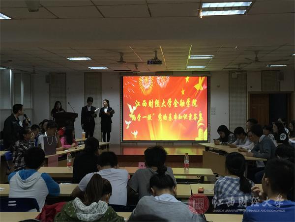 5月15日晚上7点,金融学院举办学生党员“两学一做”党的基本知识竞答赛,本次竞答赛是金融学院学生党员“两学一做”知识竞赛的决赛环节,参赛的32支队伍经过初赛、复赛的层层选拔,最终“耀我中华队”“星火燎原队”“共产主义接班人队”等10支队伍共计40名参赛选手脱颖而出,会师决赛,展开了激励的角逐。